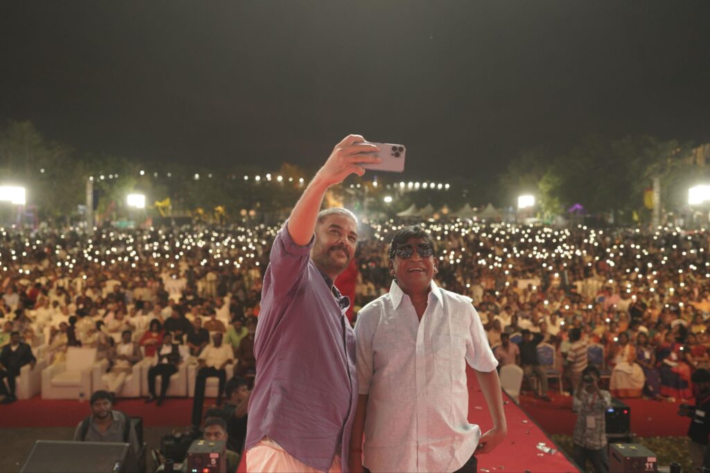 நடிகர் வடிவேலு பேசியதாவது… முதலில் சுந்தர் சார்பிலும் என் சார்பிலும் ஏ சி சண்முகம் அய்யா அவர்களுக்கு நன்றி. 10 ஆயிரம் மாணவர்கள் முன்னிலையில் இப்பட விழா நடப்பது மகிழ்ச்சி. நானும் சுந்தர் சி யும் 15 வருஷமா சேர வில்லை, நம்மூரில் பிரிச்சி வைக்க ஆளா இல்லை, இடையில் நாங்கள் பிரிந்திருந்தது பெரிதாகத் தெரியவில்லை. இந்தப்படம் எதோ நேற்று செய்த வின்னர் படம் மாதிரி, அத்தனை புதிதாக இருக்கிறது. சுந்தர் சிக்கு சொல்லவா வேண்டும். ஒவ்வொரு காட்சியையும் ரசித்து ரசித்து உருவாக்கியிருக்கிறார். பேசி முடிச்சு 35 நாளில் இப்படத்தை முடித்து விட்டோம். உங்களுக்குத் தேவையான அத்தனை தீனியும் படத்தில் இருக்கிறது. இது தியேட்டரில் எல்லோரும் சேர்ந்து பார்த்து கொண்டாட வேண்டிய படம். சுந்தர் சி அருமையாக எடுத்துள்ளார், என்னிடம் என்ன வாங்க வேண்டும் என, அவருக்கும் தெரியும் உங்கள் எல்லோருக்கும் கொண்டாட்டம் காத்திருக்கிறது என்றார்.