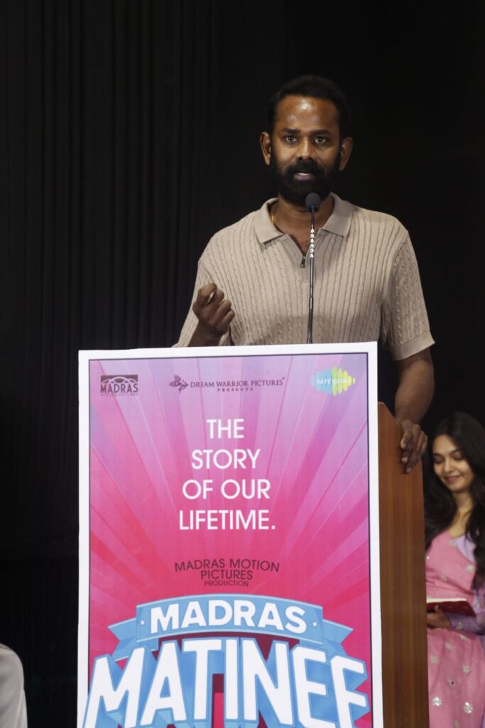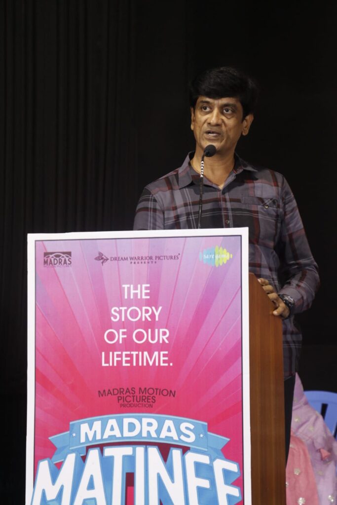 ட்ரீம் வாரியர் பிக்சர்ஸ் தயாரிப்பாளர் எஸ் ஆர் பிரபு பேசியதாவது… மெட் ராஸ் மேட்னி படத்தை ட்ரீம் வாரியர் பிக்சர்ஸ் நிறுவனத்தின் மூலமா வெளியிடுவதில் மிக்க மகிழ்ச்சி. இன்றைக்கு மொத்த இந்திய சினிமாவும் ஒரு முக்கியமான ஒரு காலகட்டத்தில இருக்குன்னு நினைக்கிறேன். சினிமாவின் மார்க்கெட் முழுக்க மாறியிருக்கு, கடைசி ஒரு வருடத்தில் என்ன படம் செய்வது என்பதில் எல்லோரிடமும் குழப்பம் இருக்கிறது, ஆனால் மக்கள் இன்னும் தியேட்டருக்கு நிறைய வந்து படம் பார்க்கிறார்கள். நல்ல படங்களை சப்போர்ட் பண்றாங்க. எல்லாரும் ஒரு படம் ஆரம்பிக்கிறப்போ, இந்த படம் மிகப்பெரிய வெற்றி பெறணும். நமக்கு ஒரு அங்கீகாரம் கிடைக்கணும். நம்முடைய கனவு நிறைவேறணும். நிறைய பணம் சம்பாதிக்கணும். பேர சம்பாதிக்கணும் இந்த மாதிரி நிறைய ஒவ்வொருத்தருக்கும் ஒவ்வொரு மாதிரியான விஷயத்தோட ரொம்ப பாசிட்டிவாதான் ஆரம்பிக்கிறோம். ஆனால் ஆரம்பிக்கிற எல்லா படங்களும் அதே மாதிரியான அவுட்புட்டோட வந்து முழுமை பெறறது இல்லை. அது ரொம்ப சிக்கலான ஒரு விஷயம். நிறைய வெவ்வேறு விதமான கலைஞர்களுடைய பணிகள் ஒரு படத்துக்கு தேவைப்படுது, அது அழகா அமைஞ்ச படமா மெட்ராஸ் மேட்னி படத்தைப் பார்க்கிறேன். சின்ன படம் பெரிய படம் அப்படின்னு எப்பவுமே நம்மளே வகைப்படுத்திட்டே இருக்கோம். அப்படி இல்லாம பெரும்பான்மையாக இருக்கக்கூடிய ஒரு மிடில் கிளாஸ் லைஃபை, ரொம்ப எதார்த்தமா அதே நேரத்துல ரசிக்கும்படியா இந்தப்படத்தில் சொல்லியிருக்கிறார்கள். ஒவ்வொரு கேரக்டர்ஸும் நம்ம வாழ்க்கையில நம்ம பார்த்த கேரக்டர்ஸ திரும்பி பார்க்கிற மாதிரி இருந்தது. ஒரு மிடில் கிளாஸ் லைஃப் மேட்னி ஷோவா பாக்குற மாதிரியான ஒரு அனுபவம்தான் இந்தப்படம். நிறைய விஷயங்கள் ரொம்ப நாஸ்டாலஜிக்கா இருந்தது. கார்த்திகேயன்மணி மிகச்சிறப்பாக படத்தை தந்துள்ளார். இப்படத்தின் ஒளிப்பதிவாளர் தமிழ் சினிமாவில் முக்கியமான ஆளாக வருவார், எல்லா நடிகர்களும் சிறப்பான நடிப்பைத் தந்துள்ளார்கள். இசையமைப்பாளர் பாலசாரங்கன் இசை மிகச்சிறப்பாக இருந்தது. காளி வெங்கட்டை வைத்து ஒரு ஆக்சன் படமே எடுக்கலாம் அவர் நடிப்பு அவ்வளவு சிறப்பாக இருந்தது. இப்படத்தை ஒரு மாஸ் கமர்ஷியல் சினிமாவாகத்தான் நான் பார்க்கிறேன் கண்டிப்பாக அனைவருக்கும் பிடிக்கும் என்றார்.