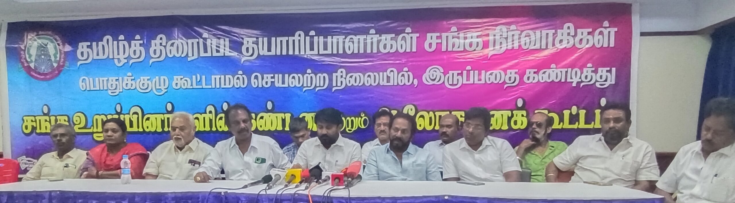 தமிழ்த் திரைப்பட தயாரிப்பாளர்கள் சங்க நிர்வாகிகள் பொதுக்குழு கூட்டாமல் செயலற்ற நிலையில், இருப்பதை கண்டித்து சங்கத்தின் உறுப்பினர்களின் கண்டனம் மற்றும் ஆலோசனை கூட்டம் தனியார் விடுதியில் நடைபெற்றது.