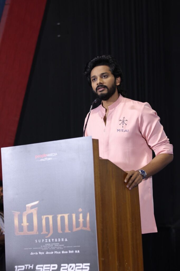 தேஜா சஜ்ஜா, மஞ்சு மனோஜ், ஜெகபதி பாபு, ஷ்ரியா சரண், ஜெயராம் நடிப்பில், கார்த்திக் கட்டம்னேனி இயக்கி, ஒளிப்பதிவு செய்திருக்கும் ஃபேண்டசி படம் “மிராய்”. பீபிள் மீடியா பேக்டரி தயாரித்துள்ள இப்படத்தின் பத்திரிகையாளர் சந்திப்பு சென்னையில் நடைபெற்றது.