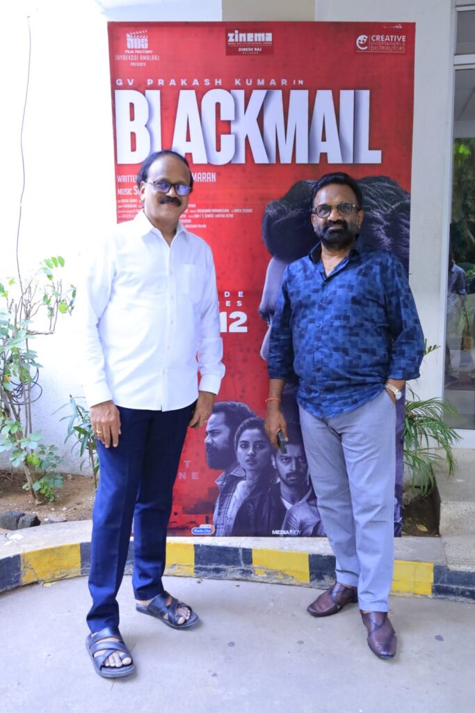 மு. மாறன் இயக்கத்தில், JDS ஃபிலிம் ஃபேக்டரி பேனரில் ஜெயக்கொடி அமல்ராஜ் தயாரிப்பில் ஜிவி பிரகாஷ்குமார் நடித்துள்ள ‘பிளாக்மெயில்’ திரைப்படம் செப்டம்பர் 12, 2025 அன்று திரையரங்குகளில் வெளியாகிறது. படத்தின் ப்ரீ ரிலீஸ் நிகழ்வு சென்னையில் நடைபெற்றது.