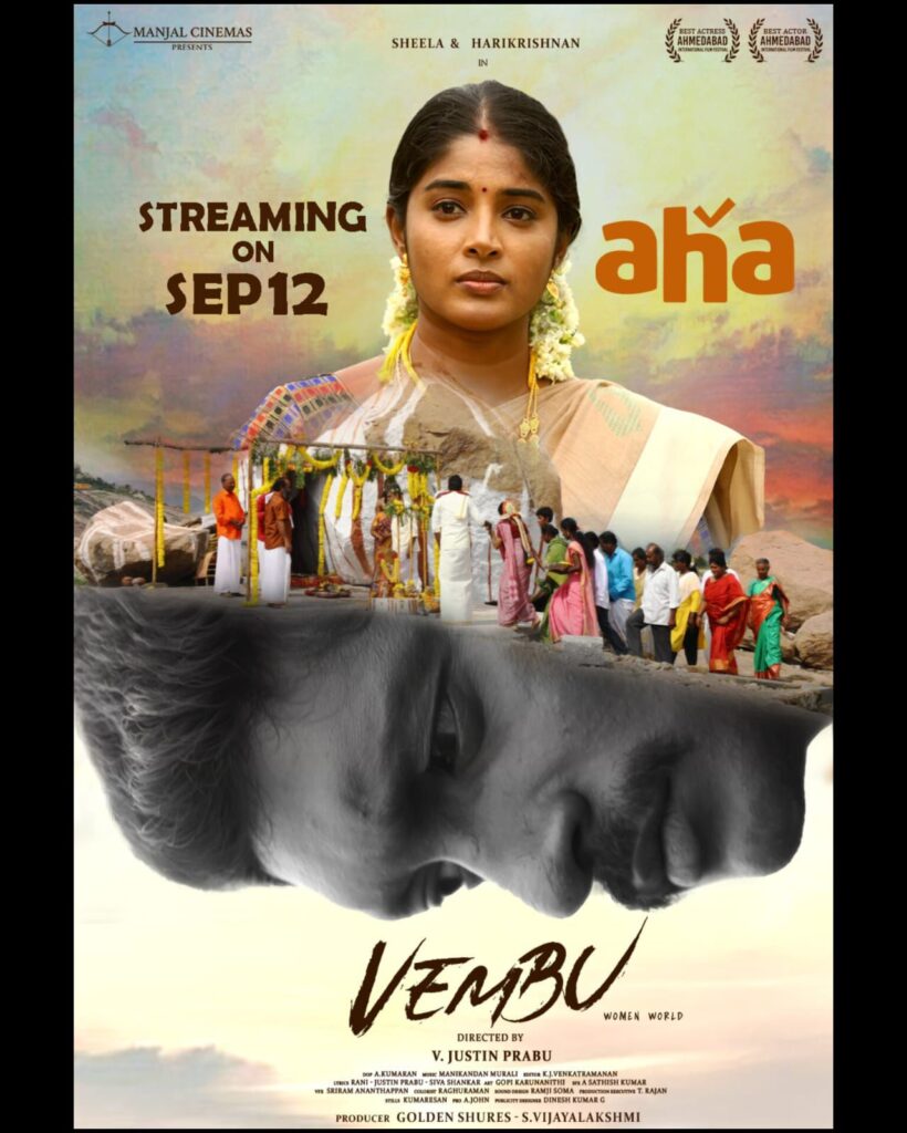 மே-23ஆம் தேதி தமிழகமெங்கும் அதிக அளவு திரையரங்குகளில் வெளியாகி மக்கள் மத்தியிலும் பத்திரிகையாளர்களின் பாராட்டையும் பெற்ற வேம்பு திரைப்படம் செப்டம்பர் -12 ஆம் தேதி ஆஹா ஓடிடி -இல் வெளியாகிறது. அகமதாபாத் சர்வதேச திரைப்பட விழாவில் திரையிட தேர்வான இந்தப்படம், சிறந்த நடிகர் ஹரிகிருஷ்ணன், சிறந்த நடிகை ஷீலா என இரண்டு விருதுகளை பெற்றுள்ளது.