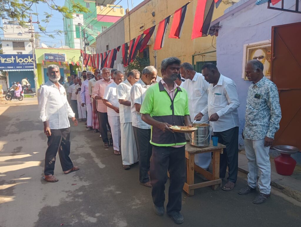 உடன் பகுதி செயலாளர் அன்பு, கழக மூத்த முன்னோடிகள் சிங்கை இரவிச்சந்திரன், முன்னாள் மாவட்ட செயலாளர், அழகுமலை L.P.F, வெ.கிருஷ்ணசாமி L P.F, சிங்கைபிரபாகரன் தலைமை கழகப் பேச்சாளர், கனகராஜ், பால்ராஜ், முருகானந்தம், நடராஜ், தேவராஜ், ராஜேந்திரன், அன்னம் பாபு, குமரேசன், ராஜகோபால், ராஜ் மேஸ்திரி, பாலகிருஷ்ணன், ரமேஷ். பாலசுப்பிரமணியம், தங்கவேல், வீராசாமி, அரவிந்தன், ராஜசேகர், சிவகுமார் , ஜார்ஜ், நாராயணசாமி, மகாலிங்கம், ஈஸ்வரன் என்கிற துரை,திருமுருகன், பாலமுருகன், கதிர்வேல், நாகராஜன் ஆகியோர் கலந்து கொண்டனர். பின்னர் நூற்றுக்கும் மேற்பட்டோருக்கு காலை சிற்றுண்டி வழங்கப்பட்டது.