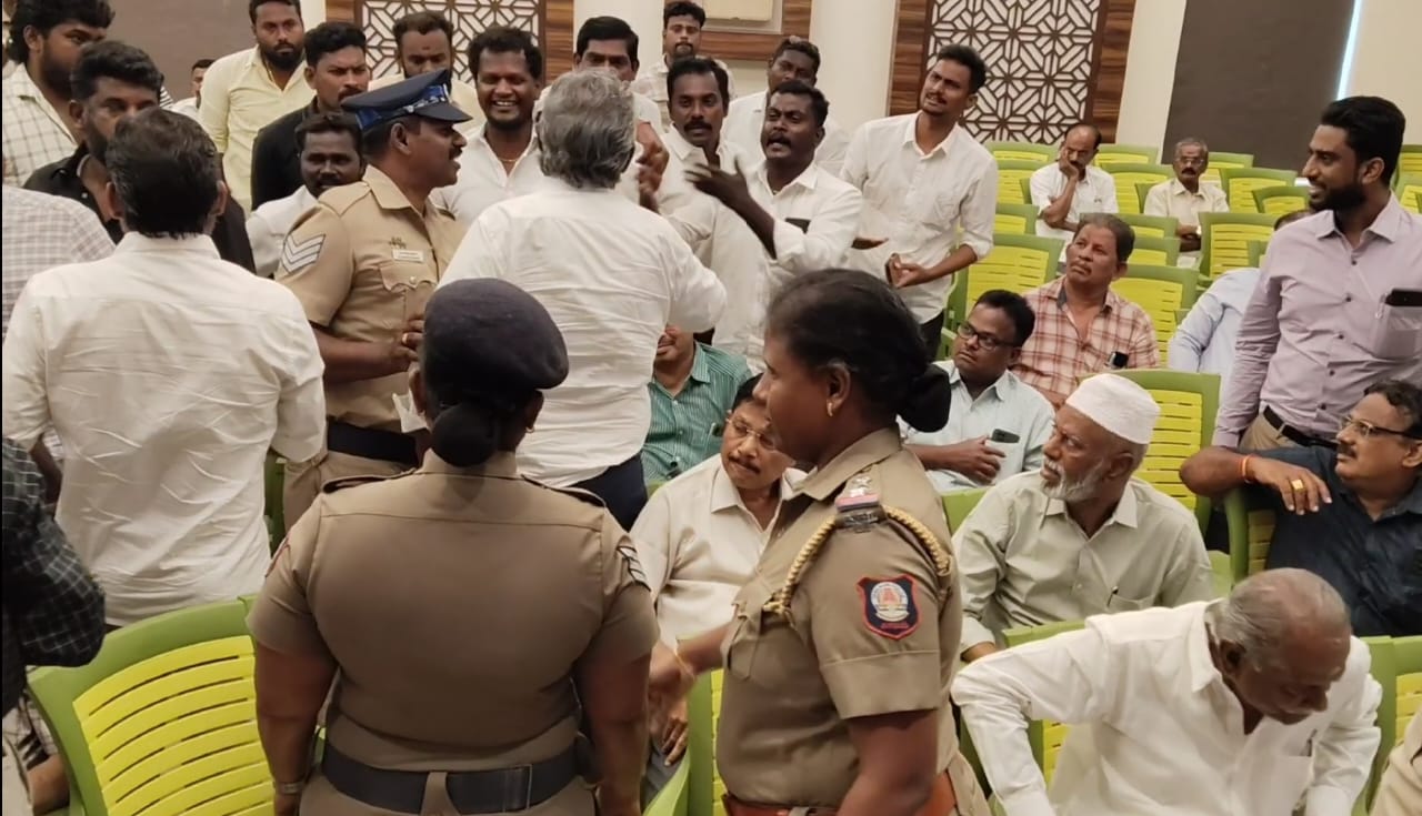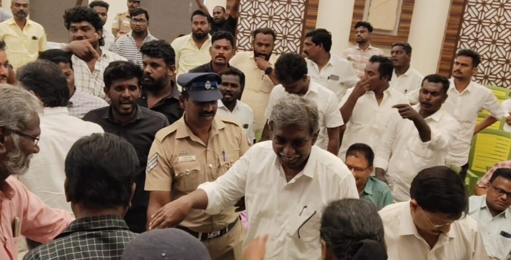 மருத்துவ கழிவு சுத்திகரிப்பு ஆலை அமைக்க கருத்து கேட்பு கூட்டத்தில் கடுமையான வாக்குவாதம் ஏற்பட்டதை அடுத்து அதிகாரிகள் கூட்டம் முடியும் முன்னரே கிளம்பி சென்றனர்.