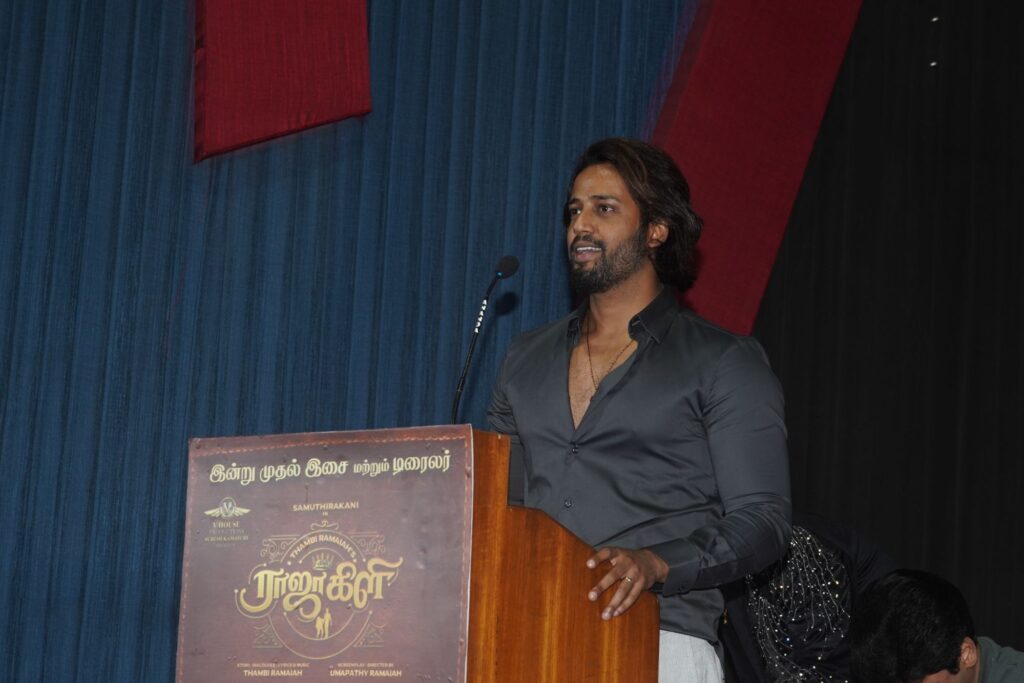 கதையின் நாயகன் தம்பி ராமையா பேசும்போது, எனது மகன் இயக்குநராக அறிமுகமாகும் இந்த நிகழ்வில் கலந்து கொள்வதற்கு எம்ஜிஆர் ஆகவும் ஆர்.எம் வீரப்பனாகவும் என எல்லாமாக வந்திருக்கும் சத்யஜோதி தியாகராஜனுக்கு நன்றி. நான் சந்தித்த பல தொழிலதிபர்களிடம் உரையாடிய போது மனிதரில் புனிதராக இருக்கக்கூடிய ஒரே ஒரு ஆத்மா அவர் வாழ்ந்த வாழ்க்கையை ஒட்டுமொத்த ரகசியத்தை ஒரு பச்சை குழந்தை போல என்னிடம் கொட்டி தீர்த்தார். அதை எப்படியாவது வெளிப்படுத்த வேண்டுமே என நினைத்தபோது அதற்கு எனக்கு உருவம் கொடுத்தது என்றால் சமுத்திரக்கனி தான். சினிமாவில் பல பேர் என்னை பயன்படுத்துவார்கள். பயணம் செய்வார்கள். ஆனால் சமுத்திரக்கனி மட்டும்தான் என்னை பயன்படுத்தி பயணம் செய்து பக்கத்திலும் இருப்பவர். என் வீட்டில் யாராவது ஏதாவது என்னை சொன்னால் கூட என் தம்பி சமுத்திரக்கனி இருக்கிறான். அவனிடம் சென்று விடுவேன் என்று கூறி தான் அனைவரையும் மிரட்டி வருகிறேன்.