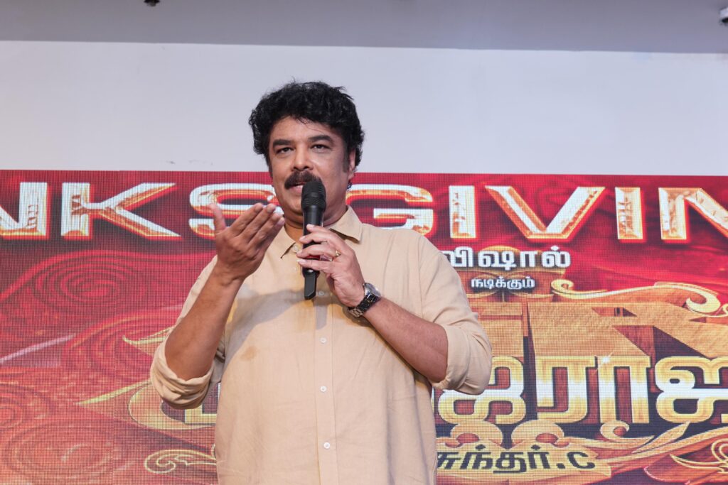 இந்த நிகழ்வில் இயக்குநர் சுந்தர்.சி பேசும்போது.. எனக்கு தெரிந்து என்னுடைய எந்த படத்திற்கும் நான் சக்சஸ் மீட் வைத்தது கிடையாது. கடைசியாக ஹிட் அடித்த அரண்மனை_4 படம் உட்பட, என் படம் வெளியான பின்பு அடுத்த படத்திற்கு அப்படியே நகர்ந்து விடுவேன். ஆனால் இந்த படம் அதை எல்லாவற்றையும் மீறிய ஒரு சந்தோஷத்தை கொடுத்திருக்கிறது. மற்ற படங்களை விட இது ஒரு ஸ்பெஷல். 13 வருடம் கழித்து இந்த படம் வருகிறது, என்ன பெரிதாக சாதித்து விடப்போகிறது என்று கூட திரையுலகில் சிலர் சொன்னார்கள். ஆனால் மக்களுக்கு இந்த படத்தின் மீது நம்பிக்கை இருந்தது. ஏனென்றால் இந்த படத்தை நாங்கள் அறிவித்த சமயத்திலேயே எங்களுக்கு ரசிகர்களிடம் இருந்து கிடைத்த வரவேற்பு அபரிமிதமானது. தயாரிப்பாளர் மனோகர் பிரசாத், இந்தப் படத்தைப் பார்த்து அதை ரிலீஸ் பண்ணுவதற்கான முயற்சிகளை மேற்கொண்ட திருப்பூர் சுப்பிரமணியம். ஏசி சண்முகம். ஏ சி எஸ் அருண்குமார். உறுதுணையாக இருந்த மதன் உள்ளிட்ட பலருக்கு நான் இந்த நேரத்தில் என் நன்றியை தெரிவித்துக் கொள்கிறேன்.
