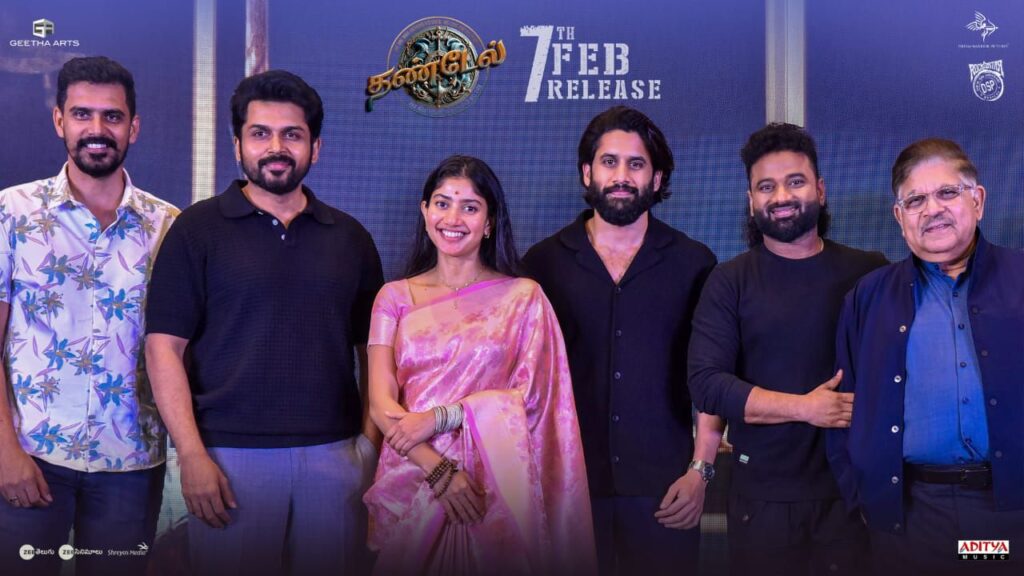 நடிகர் கார்த்தி பேசுகையில், இது எனக்கு முக்கியமான மேடை. தெலுங்கு திரையுலகிலிருந்து எனக்கு ஏராளமான அன்பு கிடைத்திருக்கிறது. அந்த அன்பை திருப்பி செலுத்துவதற்கான வாய்ப்பாக இதனை கருதுகிறேன். இங்கு வந்த பிறகுதான் நாக சைதன்யா என்னிடம், இந்த கதை 2018 ஆம் ஆண்டில் நடந்த உண்மை சம்பவம் என்று சொன்னார். கேட்பதற்கு இன்ட்ரஸ்டிங்காக இருந்தது. நம் ஊரில் மீன் பிடிக்கும் மீனவர்கள் பாகிஸ்தான் எல்லைக்கு சென்று மாட்டிக் கொள்கிறார்கள். இவர்கள் குஜராத்திற்கு சென்று படகில் மீன் பிடித்துக் கொண்டிருக்கும் போது எல்லை தாண்டி பாகிஸ்தானுக்கு சென்று மாட்டிக் கொள்கிறார்கள் என்றார். பிறகு அங்கிருந்து எப்படி தப்பித்து வந்தார்கள் என்பதை ஒரு அழகான காதல் கதையாக இந்த திரைப்படம் உருவாகி இருக்கிறது.