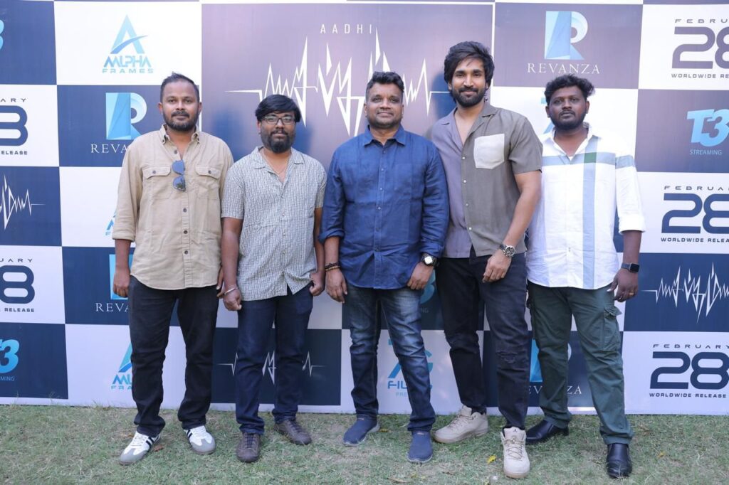 இயக்குனர் அறிவழகன் பேசியதாவது.. நீண்ட இடைவேளைக்குப் பிறகு, என்னுடைய படம் தியேட்டருக்கு வருகிறது. ஈரம் படத்தில் தண்ணீரை வைத்து புதுமை செய்தது போல், இப்படத்தில் சவுண்ட் வைத்துச் செய்யலாம் என்ற போது, நிறைய சவால்கள் இருந்தது. ஈரம் படம் இப்போது வரை டெக்னிகலாக பாராட்டப்படும் படம். தண்ணீரில் ஹாரர் எனும் போது, அந்த ஆவியின் உருவத்தைக் காட்டுவது, மிக எளிதாக இருந்தது. ஆனால் சவுண்டை வைத்து பேயை காட்டுவது எப்படி என, கதை எழுதும் போதே சவாலாக இருந்தது. சவுண்டில் தியேட்டரில் டால்ஃபி சவுண்ட் புரமோ வருமல்லவா, அந்த குவாலிட்டியை திரையில் கொண்டு வர திட்டமிட்டோம். 7G ஃபிலிம்ஸ் நிறுவனம் 7G சிவா இப்படத்திற்கு மிக உறுதுணையாக இருந்தார், இந்தப்படத்தின் பட்ஜெட் பெரிதான போது, இந்தப்படத்தின் டெக்னிகல்களை புரிந்து கொண்டு, இப்படத்திற்கு முழு ஆதரவாக நின்றார். அவர்கள் ஏற்கனவே டிஸ்டிரிபூசனில் இருந்ததால் படத்தினை பற்றிய முழு புரிதல் அவரிடம் இருந்தது. படம் கேட்கும் அனைத்து செலவுகளையும் செய்யுங்கள் என்றார். அவரால் தான் இந்தப்படம் இந்த அளவு தரத்துடன் வந்துள்ளது அவருக்கு என் நன்றி. மேலும் என் தொழில் நுட்ப கலைஞர்களும் மிக உதவியாக இருந்தார்கள். ஆடியோகிராஃபர் உதயகுமார் என்னுடன் பல காலமாக வேலை பார்த்து வருகிறார். எடிட்டர் சாபு, ஒளிப்பதிவாளர் அருண், இசையமைப்பாளர் தமன் எல்லோரும் இணைந்து இந்தப்படத்தை உருவாக்கி இருக்கிறோம். மற்ற ஹாரர் படத்திலிருந்து இந்தப்படத்தில் என்ன வித்தியாசம்? ஹாரரில் பல ஜானர்கள் இருக்கிறது எல்லாவற்றிற்கும் ஒரு காரணம் இருக்க வேண்டும் என்று நினைப்பவன் நான். ஈரம் படம் உங்களை ஒரு அனுபவத்திற்குள் கொண்டு சென்றது போல, இந்தப்படம் மிக வித்தியாசமான அனுபவமாக இருக்கும். ஒளிப்பதிவாளர் இந்தப்படத்தில் புளூ டோன் வைக்கலாம் என்றார், அது மிக வித்தியாசமாக இருக்கும். சாபு ஜோசப் அவரும் இப்படத்தில் நிறைய புதுமைகள் செய்துள்ளார். படத்தில் என் வியூ தவிர அவரோட வியூ எப்படி இருக்கிறது எனப் பார்ப்பேன், அதில் அவர் கடினமாக உழைத்துள்ளார். அவருக்கு நன்றி. விவேகா என் எல்லாப்படங்களிலும் வேலை பார்த்துள்ளார், இந்தப்படத்திலும் பாடல்கள் நன்றாக இருக்கும். ஆர்ட் டைரக்டர் மனோஜ் மிக வித்தியாசமான செட்டை அமைத்துத் தந்தார். சவுண்ட் உதயகுமார், பல விஷயங்கள் புதுமை செய்துள்ளார். அவர் நிறைய பெரிய படங்கள் செய்து வருகிறார். இந்தப்படத்தில் எங்கே சவுண்ட் வேண்டும், எங்கு வேண்டாம் என நிறைய விவாதித்தோம். அதை மிகக் கச்சிதமாக செய்துள்ளார். ரொம்ப நாட்களாக ஆதியும் நானும் வேலை செய்ய, பேசி வந்தோம், இந்தப்படத்தை கதை சொன்னவுடன் செய்யலாம் என்றார், அவர் தயாரிப்பில