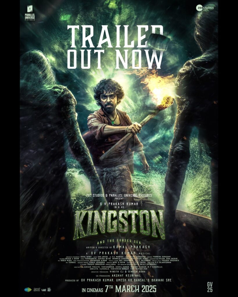 சினிமாஜீ ஸ்டுடியோஸ், பேரலல் யுனிவர்ஸ் பிக்சர்ஸ் இணைந்து தயாரித்திருக்கும் ‘கிங்ஸ்டன்’ திரைப்படத்தின் முன்னோட்டம் வெளியிடப்பட்டிருக்கிறது. இதனை தமிழில் முன்னணி நட்சத்திர நடிகரான சிவ கார்த்திகேயன் அவருடைய சமூக வலைதள பக்கத்தில் வெளியிட்டு படக்குழுவினருக்கு வாழ்த்து தெரிவித்திருக்கிறார். முன்னதாக நடைபெற்ற முன்னோட்ட வெளியீட்டு விழாவில் தயாரிப்பாளர் கலைப்புலி எஸ் தாணு, முன்னணி இயக்குநர்களான வெற்றிமாறன், சுதா கொங்காரா, பா. ரஞ்சித், அஸ்வத் மாரிமுத்து ஆகியோர் சிறப்பு விருந்தினர்களாக கலந்து கொண்டனர்.