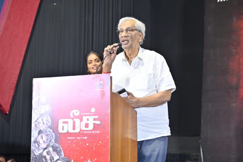 பெரிய நடிகர்கள் பத்து பேர் சேர்ந்தால் இதைத் தீர்க்க முடியும். சிவாஜியால் கலைஞரா? கலைஞரால் சிவாஜியா ?என்கிற அளவுக்கு ஒருவரால் ஒருவர் புகழ் பெற்றனர். சிவாஜிக்கு நெருக்கமானவர் கலைஞர். அந்த குடும்பத்தில் இருந்து வந்த முதல்வர் ஏதாவது செய்யலாம். தமிழக அரசு இதில் ஏதாவது செய்யலாம். தமிழக கதாநாயகர்கள் உதவி செய்யலாம். அல்லது நடிகர் சங்கம் உதவி செய்து அந்த சிவாஜியின் வீட்டைக் காப்பாற்றுங்கள். நான் யாரையும் குறை சொல்லவில்லை வேண்டுகோளாக வைக்கிறேன். இந்த லீச் பெரிய வெற்றி பெற்று மக்கள் மனதில் சென்று சேர வேண்டும். பெரிய படங்கள் தான் ஓடும் என்ற நிலை இல்லை. சின்ன படங்கள் சென்ற ஆண்டு வெளியானதில் 10 -12 படங்கள் வெற்றி பெற்றன. இந்தப் படம் வெற்றி பெற வாழ்த்துக்கள் என்று கூறி வாழ்த்தினார்.