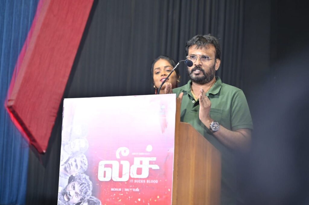 லீச் என்றால் அட்டைப்பூச்சி, அது நமக்குத் தெரியாமலேயே நம் ரத்தத்தை உறிஞ்சிக் குடிப்பது. அதை நாம் கவனிக்காமல் விட்டால் அது கடித்து ரத்தம் இழந்து உயிருக்கு ஆபத்தாகிவிடும். நம்மைச் சுற்றி இருப்பவர்கள் நல்லவரா கெட்டவரா என்பது நமக்குத் தெரியாது. ஆனால் கூடவே இருப்பார்கள். ஒருவனுக்கு அருகே இருக்கும் உறவினர்களும் நண்பர்களும் யார் நல்லவர் ? யார் கெட்டவர் ? என்று பார்த்தால் தெரியாது, ஆனால் ரத்தத்தை உறிஞ்சக் கூடியவர்களாக இருப்பார்கள். இதுதான் கதையின் அடிப்படையான ஆதார வரியாக இருக்கும். எங்களின் புதிய முயற்சிக்கு ஆதரவு தர வேண்டுகிறேன் என்றார்.