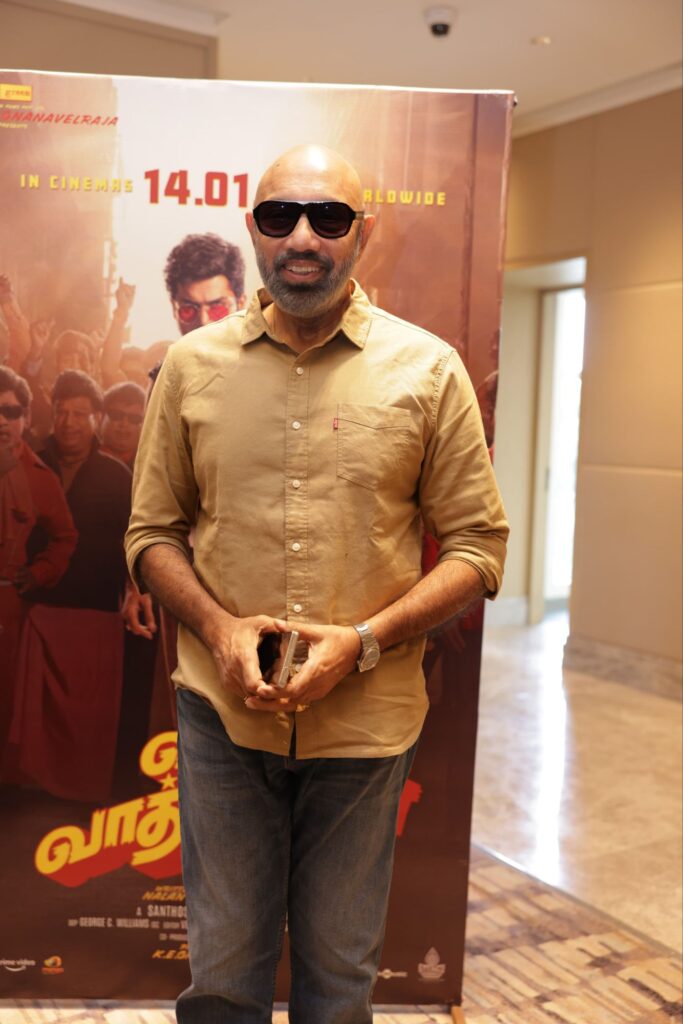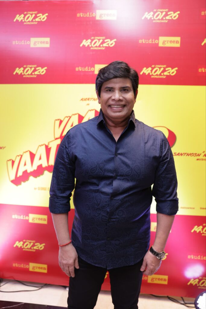 எம் ஜி ஆர் பற்றிப் பேசினால் அது தனியா ஒரு கதையாக போய் வ்டும். இந்த படத்தோட தயாரிப்பாளர் தம்பி ஞானவேல் ராஜா பற்றி ஒரு விஷயம் சொல்லவேண்டும். அவருடைய அப்பா ஒரு தீவிரமான எம் ஜி ஆர் ரசிகர். அவர் 110 தடவை நாட்டோடி மன்னன் படம் பார்த்ததாக சொன்னார். அவ்வளவு தீவிர ரசிகர். அப்படிபட்ட தயாரிப்பாளருக்கு அவர் இந்தப்படம் அமைந்தது மகிழ்ச்சி. கார்த்திக்கு முதல் படமே மிக சவாலான படம். வெளிநாட்டில் படிச்சிட்டு வந்து, அந்த மாதிரி ஒரு கிராமத்துக் கதாபாத்திரம் பண்ணுறது எளிமையானது இல்லை. ஆனால் அதைவிட கஷ்டமான விஷயம் இந்த வாத்தியார் கதாபாத்திரம். ஏனென்றால் இது ஒரு தலைவரின் பெயரோட சம்பந்தப்பட்ட கதாபாத்திரம். ஆனால் அதைத்தாண்டி இந்தப்படத்தில் எம் ஜி ஆர் பாடி லாங்குவேஜை கொண்டு வந்து அசத்திவிட்டார். கிருத்தி ஷெட்டி, ஷில்பா, தம்பி ஆனந்த்ராஜ், தம்பி சுந்தர் எல்லோரும் சிறப்பாக நடித்துள்ளனர். ஐம்பது வருடம் முன் கோவையிலிருந்து வந்த போது, பல் பெரிதாக இருக்கிறது என சிவக்குமார் அண்ணன் சிபாரிசில் டாக்டரிடம் சென்று பல்லைக் குறைத்தேன். ஆனால் நலன் இப்படத்தில் உங்கள் கதாப்பாத்திரம் வித்தியாசமாக வேண்டுமென பல் வைக்க வைத்து விட்டார். இப்படத்தில் நான் வில்லனாக நடித்துள்ளேன். எம் ஜி ஆரின் பொங்கல் படம் போல இந்தப் பொங்கலுக்கு வா வாத்தியார் வருகிறது அனைவரும் கொண்டாடுங்கள் என்றார்.