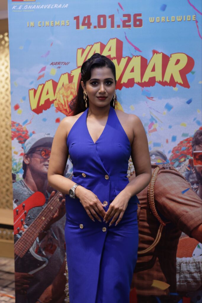 நடிகை கிருத்தி ஷெட்டி பேசியதாவது.., ஒரு பேட்டியில் நலன் ஒரே விஷயத்தை இது ஒரு பெஸ்டிவல் படம். பல குடும்பங்கள் ஒன்றாகச் சேர்ந்து வந்து பார்க்கிற படம் என்று சொன்னார். இப்போது அது அப்படியே நடந்துள்ளது. குடும்பமா, நண்பர்களோடு, எல்லாரும் சேர்ந்து படம் பார்க்கிற மாதிரி இந்த படம் மாறியிருக்கிறது. அதுக்கு நான் ரொம்ப ரொம்ப சந்தோஷப்படுறேன். இந்த படம் தாமதமானது பற்றி நிறைய பேர் என்கிட்ட கேட்டார்கள். அந்த நேரத்தில் எனக்கும் கொஞ்சம் வருத்தமா தான் இருந்தது. ஆனால் நான் ஒன்று நம்புகிறேன், நல்ல விஷயம் நடக்கவேண்டுமானால், அதுக்கு ஒரு சரியான நேரம் இருக்கும். கடவுள் நம்மளை காத்திருக்க வைக்குறார்னா, அதுக்குப் பின்னால் ஒரு பெரிய திட்டம் இருக்கும்னு நம்புறேன். அதனால இப்போ எல்லாம் சரியா நடந்ததுக்கு நான் ரொம்ப மகிழ்ச்சியா இருக்கிறேன். இந்தப்படத்தில் என்னைச் சேர்த்ததுக்காக நலன், மற்றும் ஞானவேல் இருவருக்கும் என் மனமார்ந்த நன்றி. நலன் இந்த படத்திற்காக எவ்வளவு கடினமா உழைத்திருக்கார்னு நான் நேரில பார்த்திருக்கேன். அவர் வெற்றியைப் பார்க்க ஆவலாக இருக்கிறேன். கார்த்தி சாரின் தீவிர ரசிகை நான், ஆனால் அவரை நேரில சந்திச்ச பிறகு, நான் இன்னும் பெரிய ரசிகையா மாறிவிட்டேன். ‘வா வாத்தியார்’ கதாபாத்திரம் பெரியதாக இருந்தாலும், அதை அவரைவிட சிறப்பாக யாராலும் செய்ய முடியாது. கார்த்தி மனதளவில் மிகச்சிறந்த மனிதர். அது அவரது கதாப்பாத்திரங்களிலும் பிரதிபலிக்கிறது, வா வாத்தியார் ஒரு நல்ல மனசு கொண்ட கேரக்டர் அது அவருக்குள்ள இயல்பாகவே இருக்கிறது. நான் அவரிடமிருந்து நிறைய கற்றுக்கொண்டேன். சந்தோஷ் நாராயணன் இசை படத்திற்கு மிகப்பெரிய பலமாக அமைந்துள்ளது. இப்படத்தில் உழைத்த அத்தனை கலைஞர்களுக்கும் நன்றி என்றார்.
