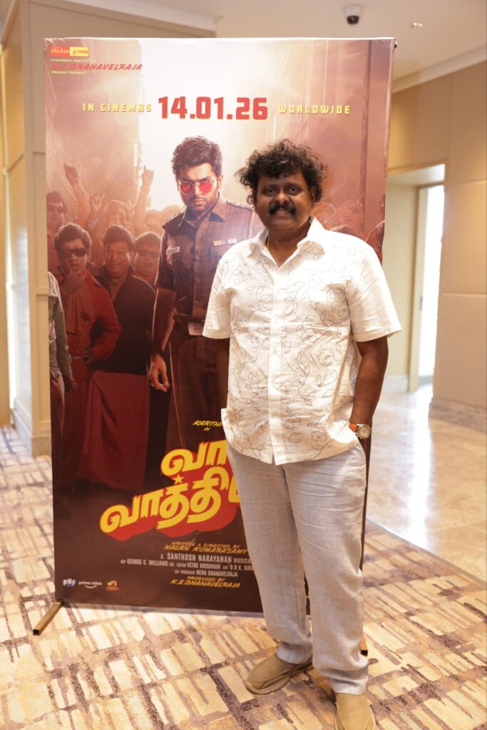 Uncategorizedஸ்டுடியோ கிரீன் நிறுவனம் சார்பில் தயாரிப்பாளர் கே. ஈ. ஞானவேல் ராஜா தயாரிப்பில், நடிகர் கார்த்தி நடிப்பில், இயக்குநர் நலன் குமாரசாமி இயக்கியுள்ள திரைப்படம் “வா வாத்தியார்”. இப்படம் பொங்கல் கொண்டாட்டமாக உலகமெங்கும் ஜனவரி 14 ஆம் தேதி திரைக்கு வரவுள்ள நிலையில், படக்குழுவினர் பத்திரிக்கையாளர்களைச் சந்தித்து படம் குறித்த அனுபவங்களைப் பகிர்ந்து கொண்டனர்.
