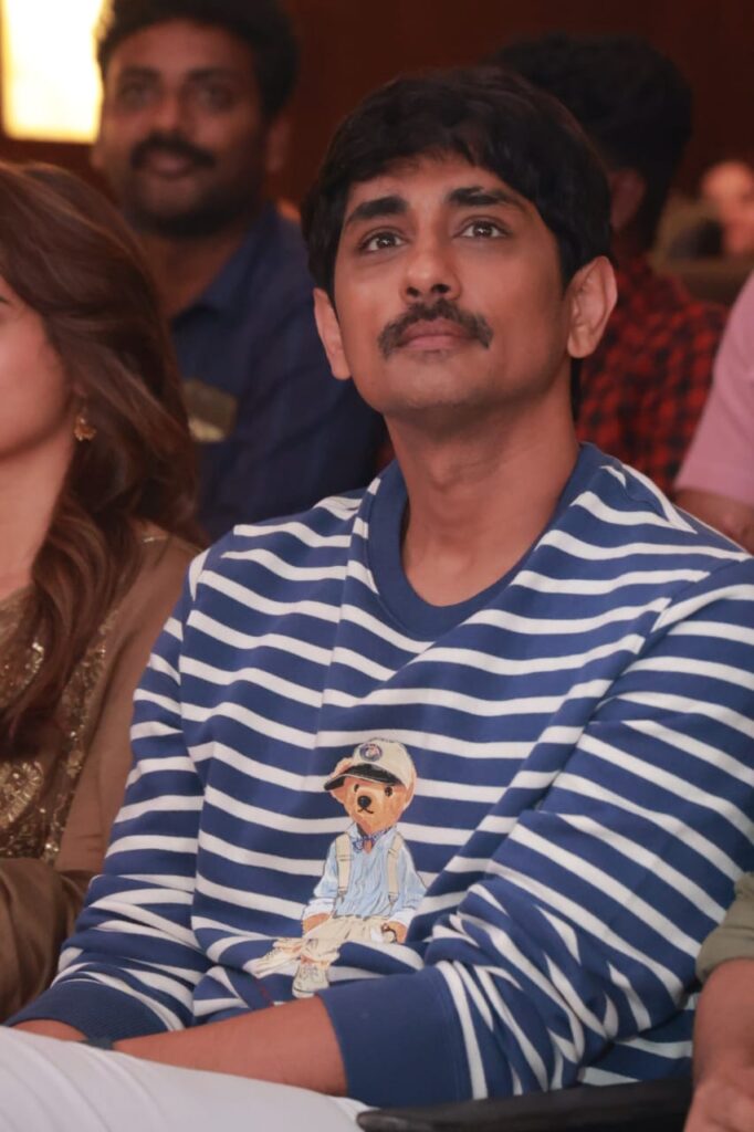 தயாரிப்பாளர் சாமுவேல் மாத்யூ பேசும்போது, 2011ல் நாளைய இயக்குனர்கள் சீசன் 1ல் ஐந்து பேர் ஃபைனலிஸ்ட். கார்த்திக் சுப்புராஜ், நலன் குமாரசாமி, அஜய் ஞானமுத்து, பாலாஜி மோகன், ஐந்தாவதாக சாமுவேல் மேத்யூ. அது நான். மற்ற எல்லோருமே படம் பண்ணி விட்டார்கள். அதிலும் சித்தார்த்தை வைத்து படம் பண்ணினார்கள். 13 வருடம் கழித்து நான் அந்த சைக்கிளை பூர்த்தி செய்கிறேன். சித்தார்த்திடம் இருந்து நிறைய கற்றுக் கொண்டிருக்கிறேன். குறிப்பாக அவர் பெண்களை மதிக்கும் விதத்தை பார்த்து நான் ரொம்பவே பெருமைப்படுகிறேன். படத்தில் ஒரு காட்சியில் கதாநாயகியை அடிக்க வேண்டும். ஆனால் சித்தார்த் மறுத்துவிட்டார் என தகவல் வந்தது. எனக்கு கூட சித்தார்த் மேல் கொஞ்சம் கோபம் இருந்த்தது. ஆனால் படம் பார்த்தபோது அடிக்காமல் அந்த காட்சியில் அவர் அவ்வளவு பெர்ஃபெக்டாக நடித்திருப்பார். அவர் அடித்திருந்தால் கூட இவ்வளவு நன்றாக வந்திருக்காது. படம் நீங்கள் பார்த்தால் உணர்வீர்கள்.